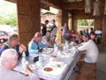 Wir fahren über den Pan Philippinen Highway. LKWs aller Größen und immer wieder Schnellbusse rasen über die Piste und lassen uns manchmal auf den kleinen Enduros zittern. Wir stoppen nach mehreren Regenschauern, die wir wartend in kleinen Strohhütten am Wegesrand abwarten, in einem Restaurant, dass mit typisch philippinischer Küche lockt. Ein leckeres Büfett ist der Lohn für diesen Stopp. Erst später merken wir, dass wir mitten in eine Hochzeit geplatzt sind. Lustig. Die Mädels singen Karaoke im Nebenraum und die Männer schütten sich systematisch mit Rum zu. Die Frage nach der Brautnacht erübrigt sich wohl von selbst, wenn man den Bräutigam beobachtet. Aber so eine Hochzeit dauert hier ja drei Tage und da hat der junge Mann noch reichlich Zeit, seine Hochzeitsnacht nachzuholen.