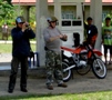 Dann zeigt er an, ab jetzt nur noch geradeaus. Hier endet sein Zuständigkeitsbereich. Ich drücke ihm schnell noch 300 Peso, umgerechnet 5 Euro in die Hand. Er strahlt. Wir haben nur 3 ½ Stunden gebraucht, um quer durch Manila zu fahren. Der Highway ist nur noch wenige Kilometer entfernt. Wir jubeln und sind stolze Helden. Siegessicher steuern wir die riesige Mautstelle an. 20 Spuren. Polizei wohin man schaut. Unser Pickup steuert auf die mittlere Spur und fährt nach Entrichtung der Mautgebühr problemlos durch. Wir klemmen uns hinter den Truck. Doch plötzlich Aufregung um uns herum. Die Schranke fällt. Wir werden von Polizisten umringt. „Not allowed for 200 ccm“ schnattert ein kleiner Officer mit vielen Abzeichen. Wir stellen uns dumm. Kurt kommt aus dem Pickup zurückgerannt und wedelt mit den Armen. Immer mehr Polizisten umringen uns. „Not allowed, go back“, tönt es von allen Seiten. Special Permition kräht Kurt zwischen all die aufgeregten Polizisten und er fingert auf seinem Handy herum. Wären da nicht all die Pumpguns um uns herum, die Situation wäre wahrhaftig zum Schiessen komisch. Kurt beschwört den Polizeichef von Manila am Telefon uns eine Eskorte zu schicken, parallalel beschimpft er auf Fränkisch-Englisch den kleinen Policeofficer. Es ist zum Kugeln.